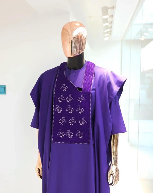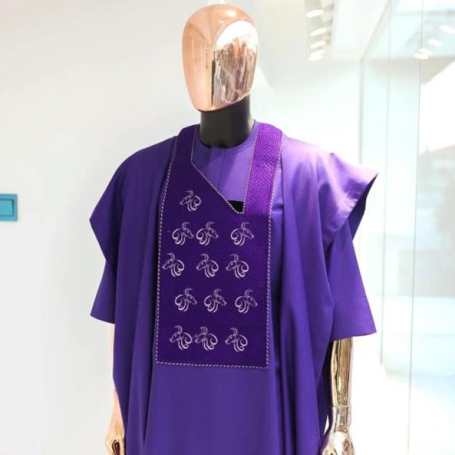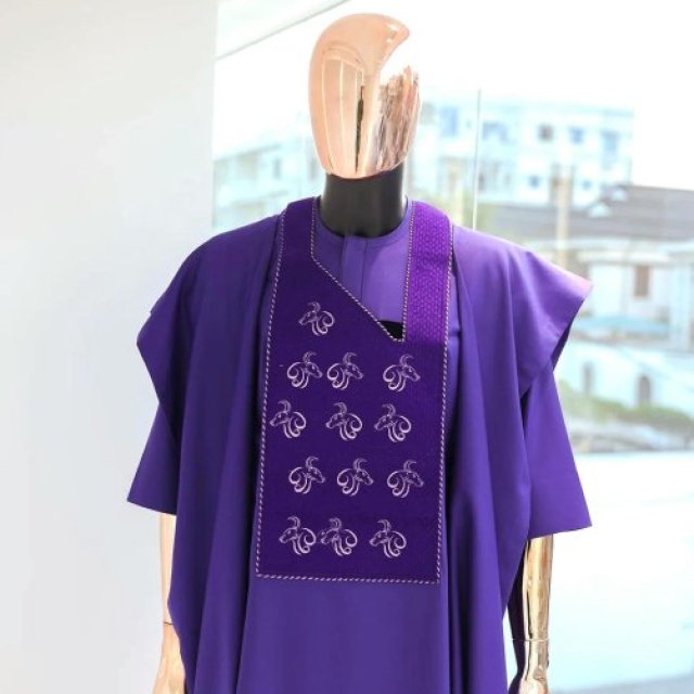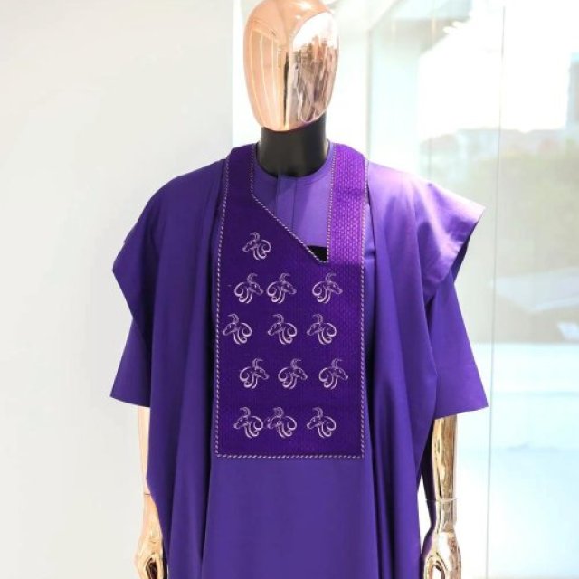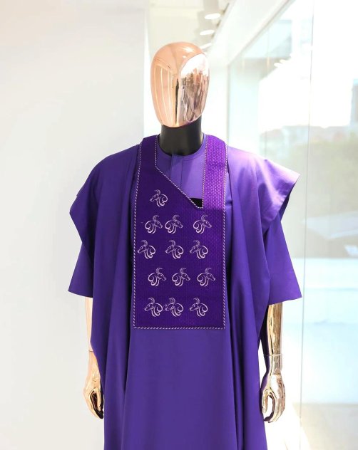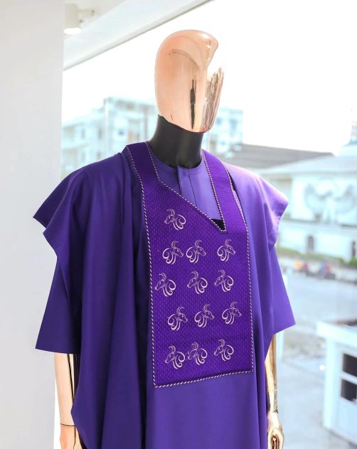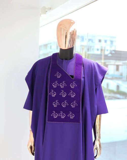 And let’s stop and talk about the fabric real quick. This purple? It’s not just loud, it’s got real king energy. Deep, lush, screams royalty without being extra about it. And the embroidery? Forget the boring, soulless machine stuff—this is straight from the masters, art-level details that flex African style like it’s nobody’s business. Weddings, parties, family reunions where the uncles are peeping game—you wanna show up? This is your move.