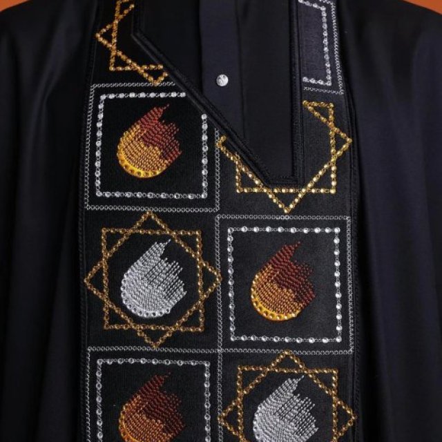 We’re talking top-tier fabric here. Jet black, obviously. None of that ashy, faded nonsense. This stuff looks expensive, feels expensive, actually is expensive—not just one of those “looks can be deceiving” moments. The embroidery? Yeah, it’s not some boring machine stitch—real people, real skills, hands-on-deck type of detail. Stitches so clean your aunties will inspect them up close and still nod in approval.
